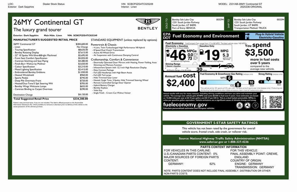 Bentley Salt Lake City presents this 2026 Bentley Continental GT finished in Dark Sapphire with a Linen interior. This next-generation Continental GT combines handcrafted luxury with advanced plug-in hybrid performance, delivering refined grand touring capability with modern efficiency.